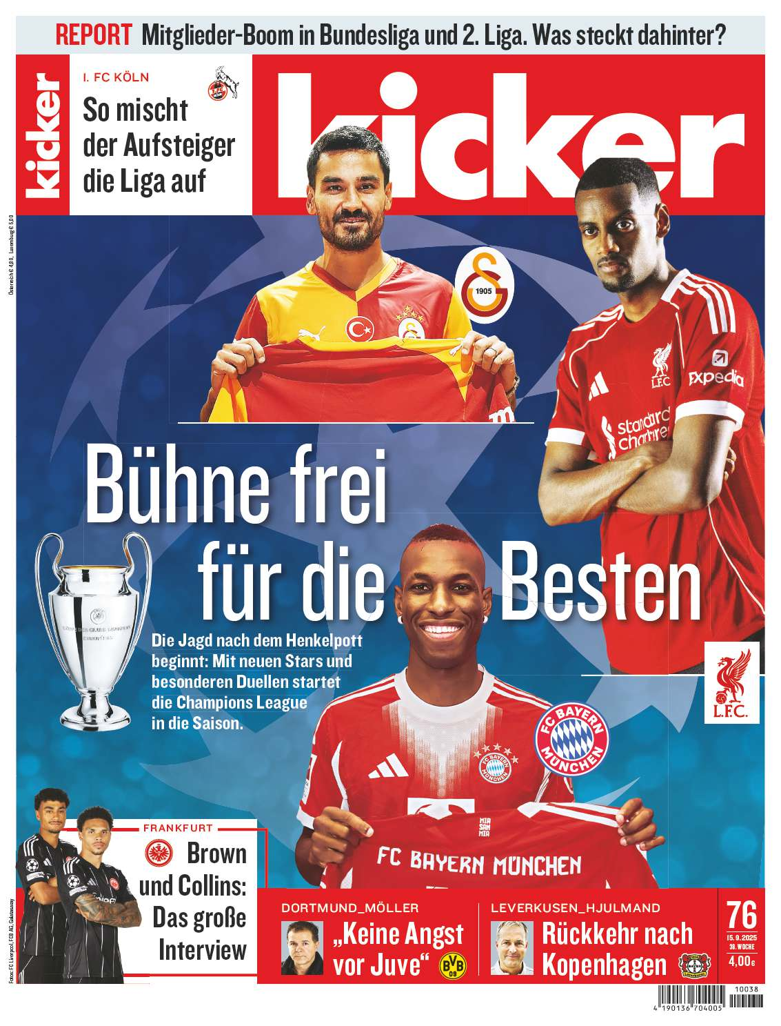 Die Jagd nach dem Henkelpott beginnt: Mit neuen Stars und besonderen Duellen startet die Champions League in die Saison. Beim FC Bayern beispielsweise trifft Neuzugang Nicolas Jackson auf seinen Ex-Klub, den FC Chelsea. Was sonst noch auf der Bühne für die Besten los ist, lesen Sie in der Montagausgabe des kicker